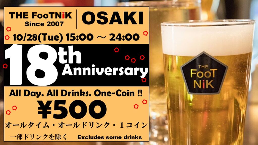 THE FooTNiK opened in Takadanobaba, Tokyo on June 8, 1996, the opening day of the European Championships in England. We moved to bigger premises in Ebisu in 2001 and added Osaki in 2007.